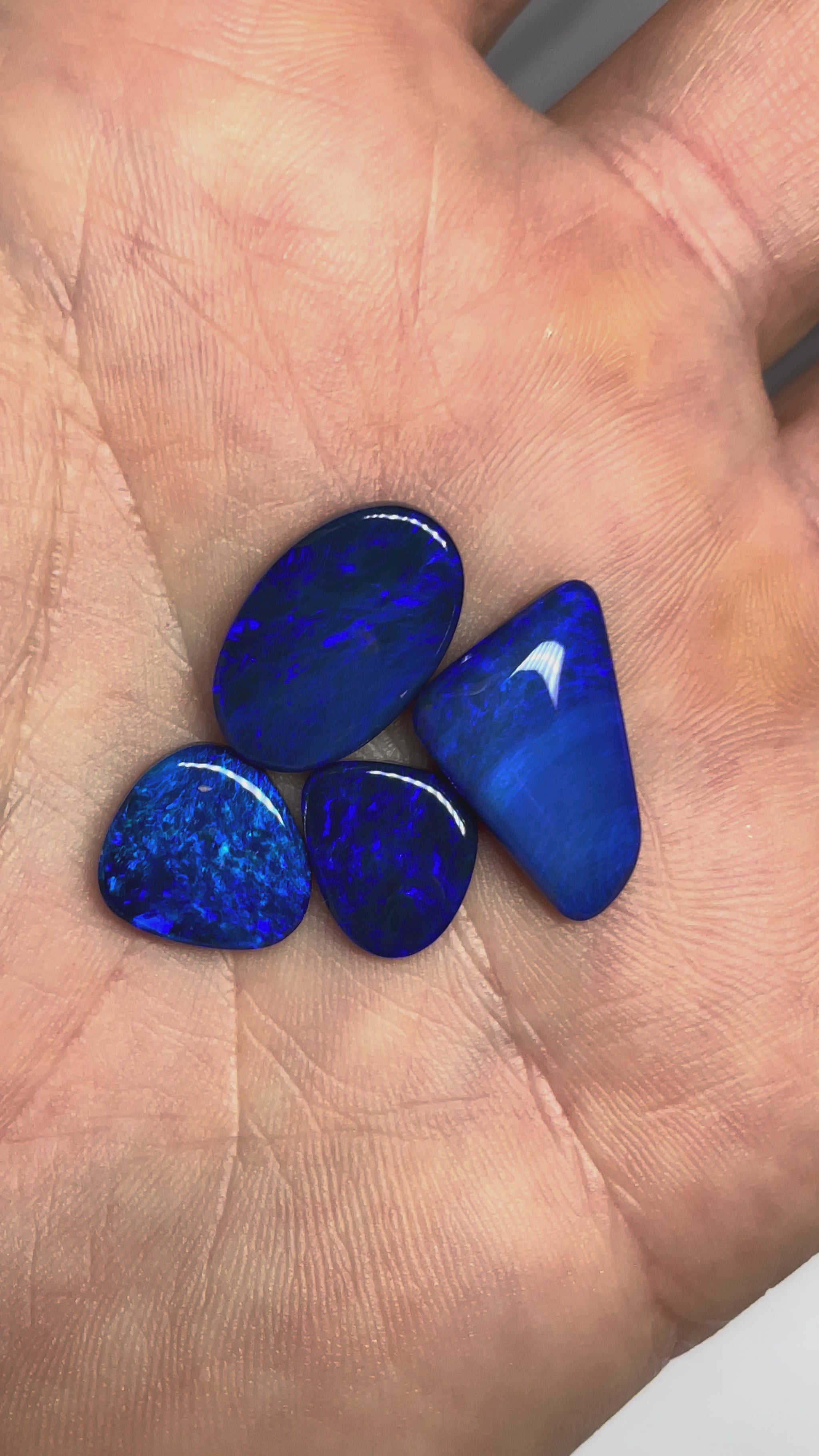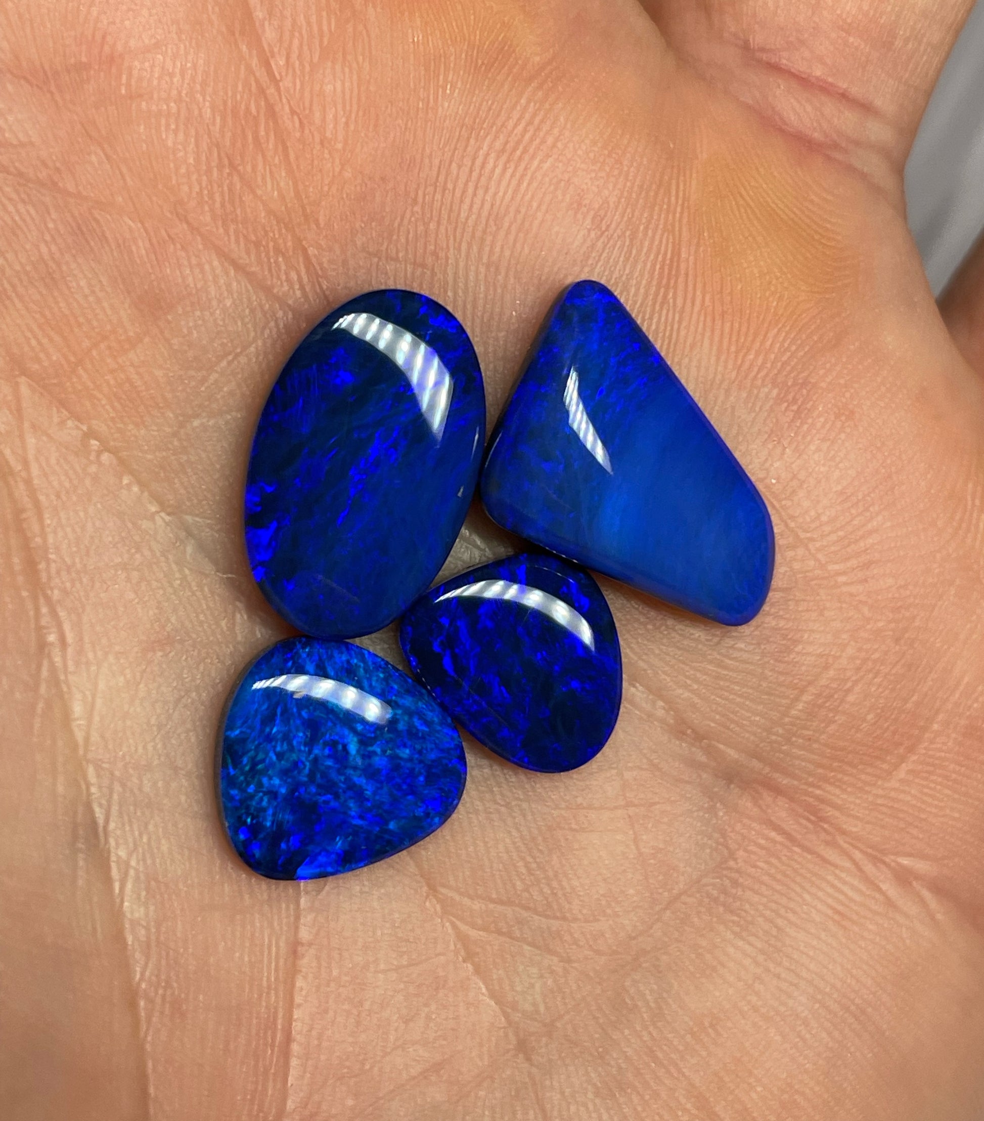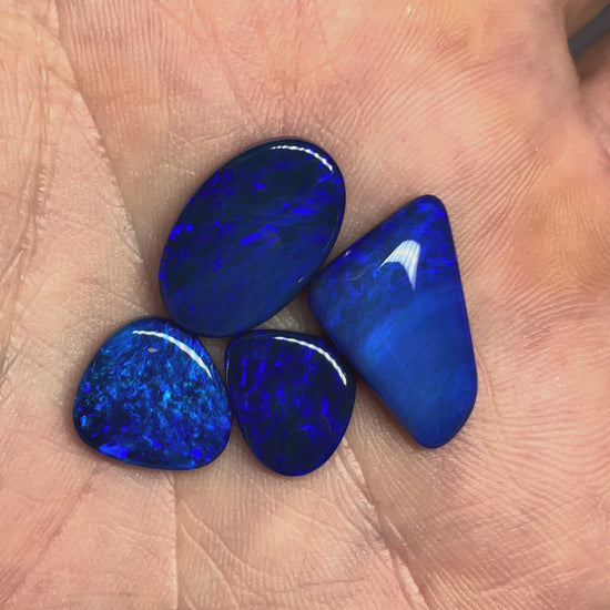 A beautiful parcel of opal doublets using crystal opal from Andamooka and black opal potch from Lightning Ridge.