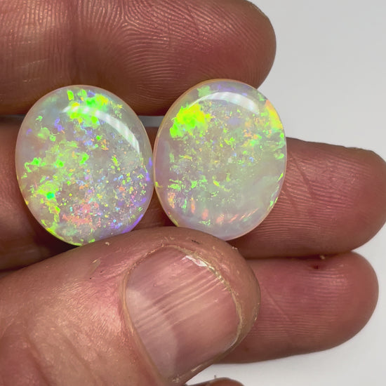 A beautiful crystal opal pair from the Shell Patch field in Coober Pedy.