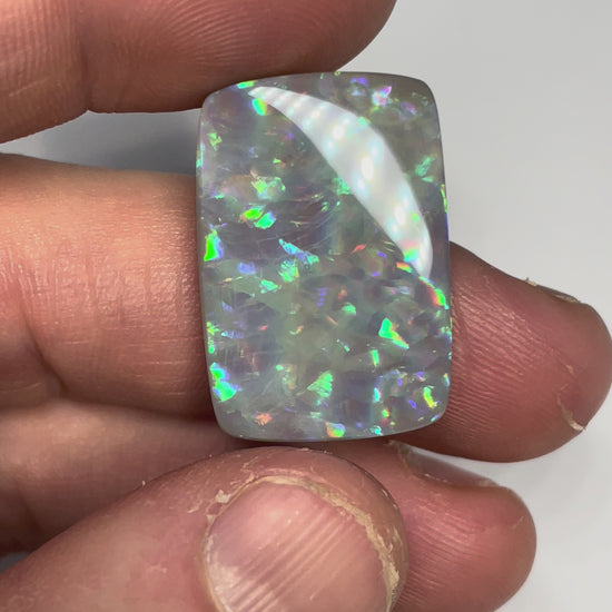 Stone is well cut and polished with good thickness, low-medium dome and nice setting/bevelled edge.