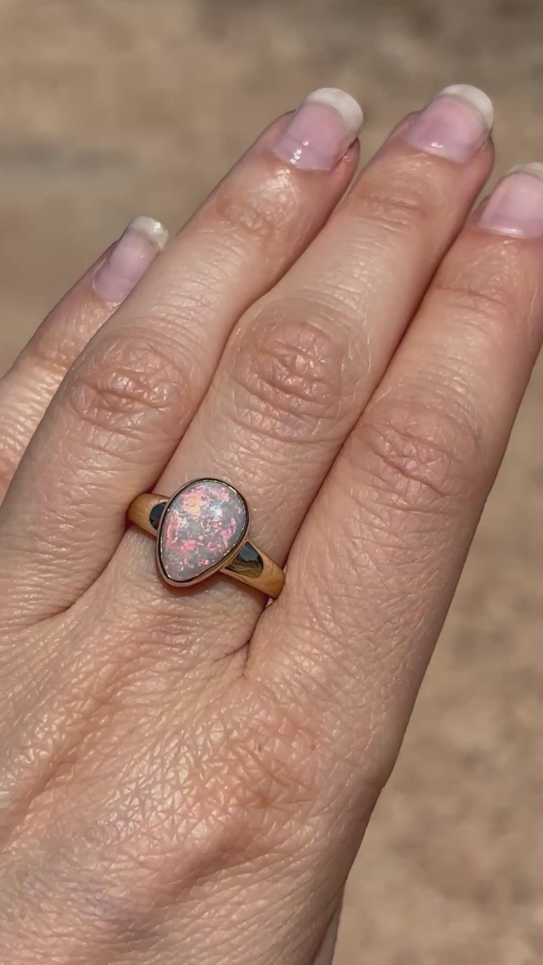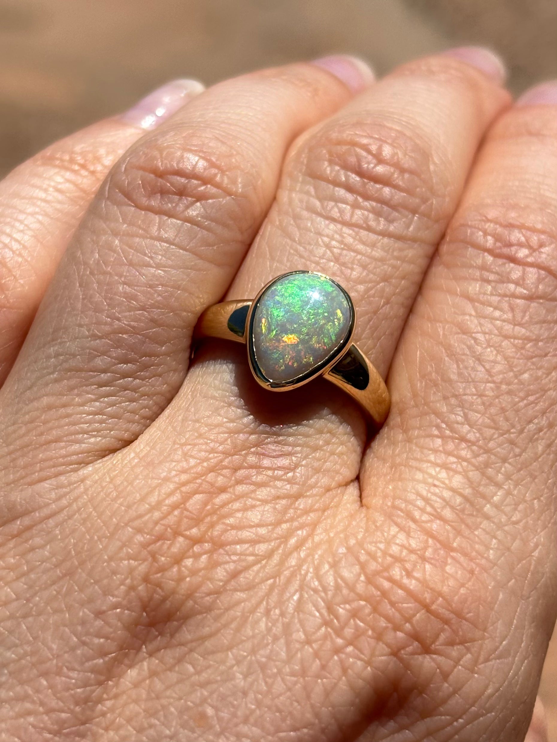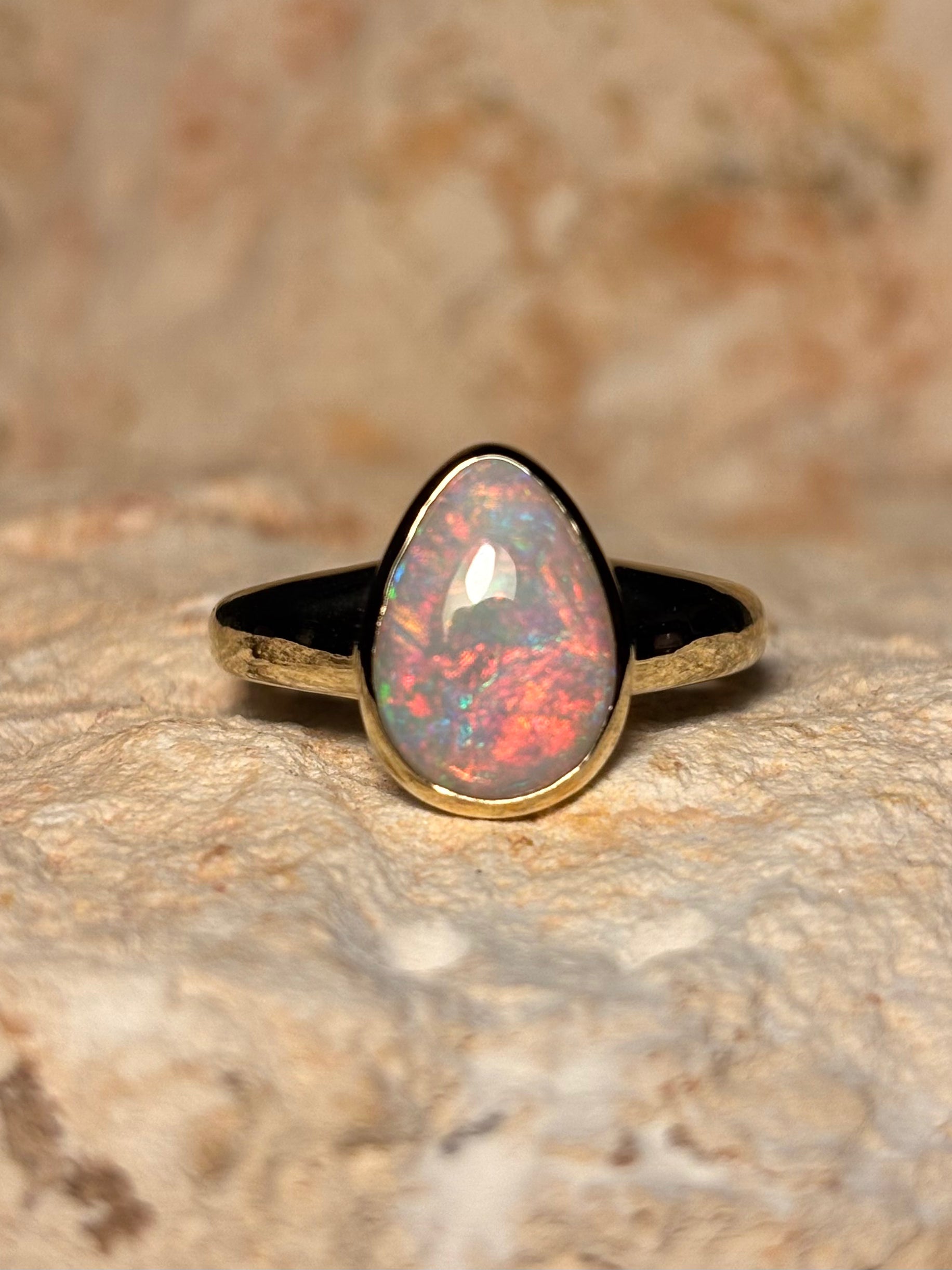 This classic opal ring is from the heart of the Australian outback and was mined at the 9 mile field, Coober Pedy, South Australia. Our jewellery is all handmade and each opal is cut by us in our Coober Pedy workshop.