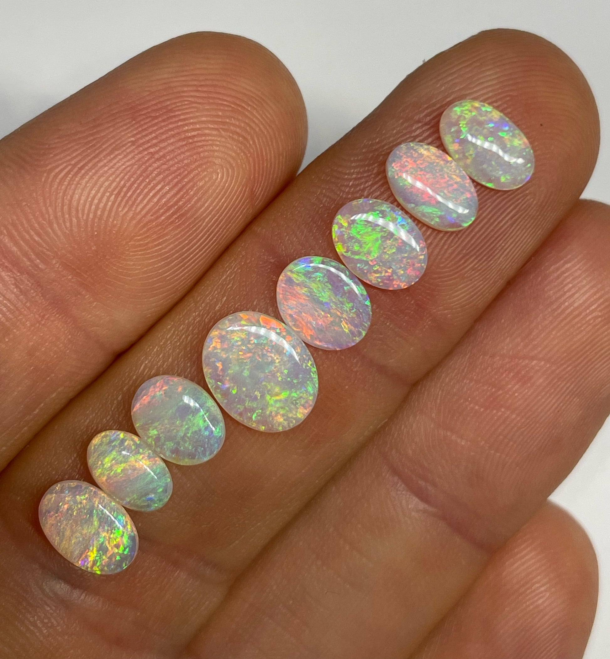 All stones have clean, bright, rainbow colour and would make a lovely line of ring stones.