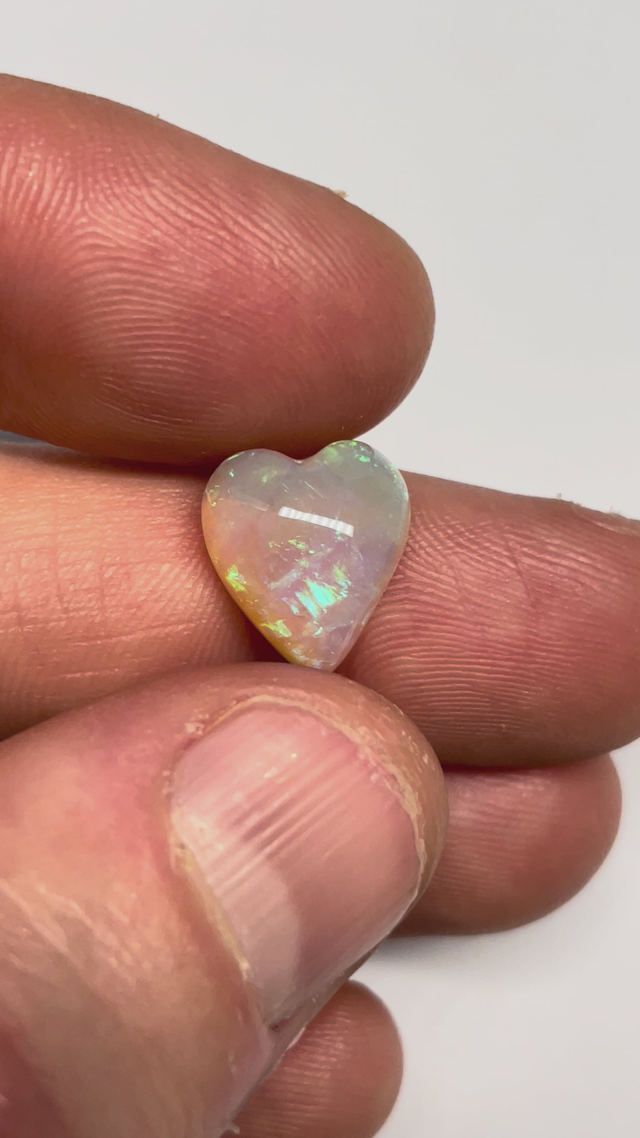 This heart shaped stone has clean, bright, green/blue dominant colour and would make a brilliant ring or pendant stone.