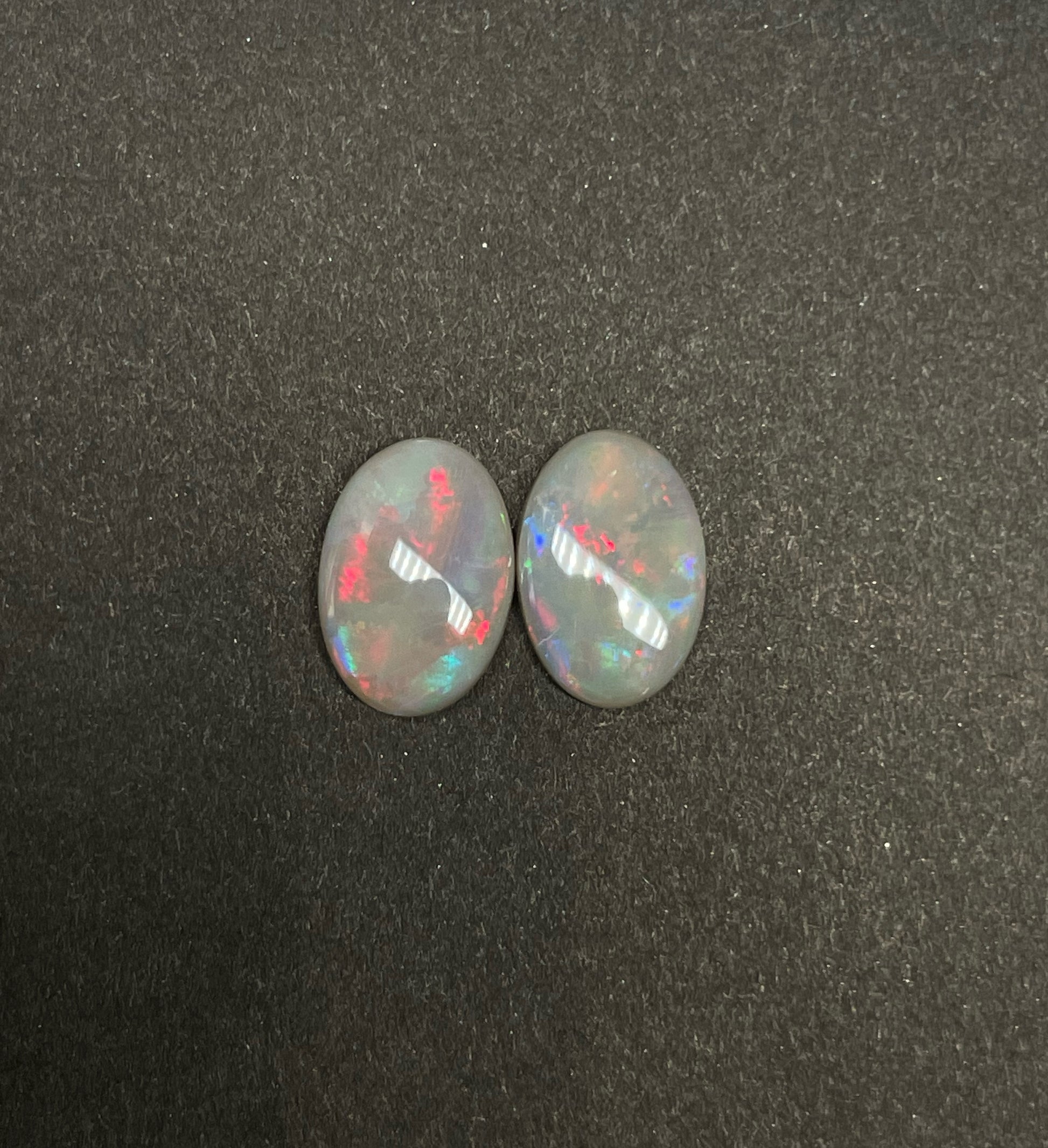 A beautiful dark opal pair from the Opal Valley field in Coober Pedy.