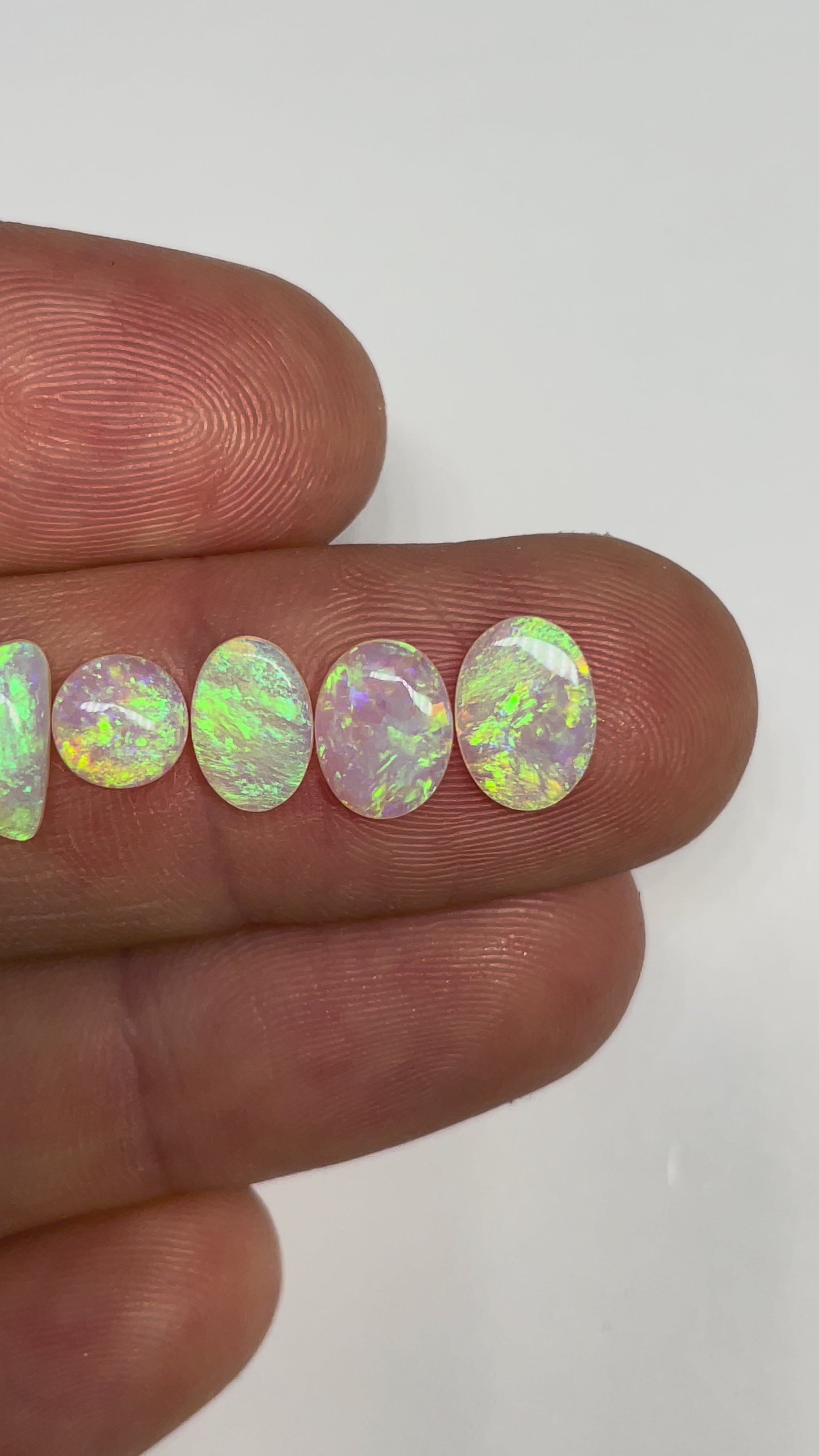 All stones have clean, bright, green/blue/gold colour and would make a lovely line of ring stones.