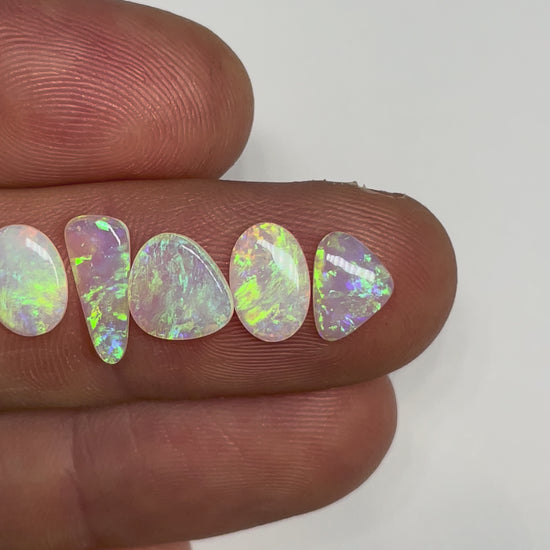 All stones have clean, bright, green/blue/gold colour and would make a lovely line of ring stones.