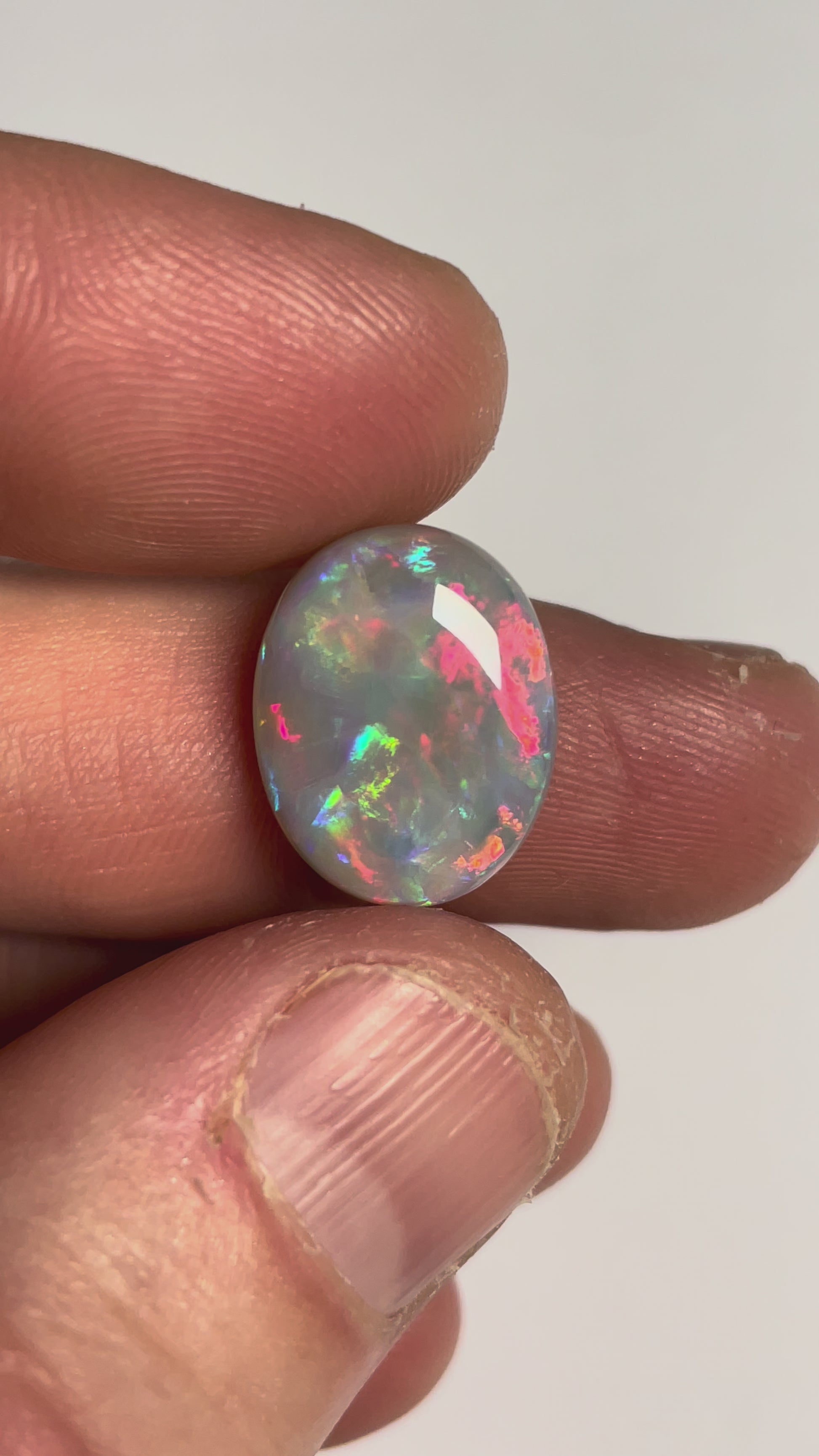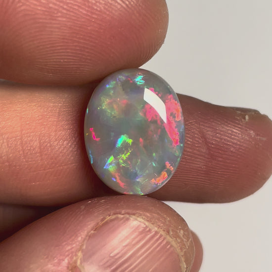 This stone has clean, vivid, fiery colour with brilliant pattern and would make a stunning pendant or ring stone.
