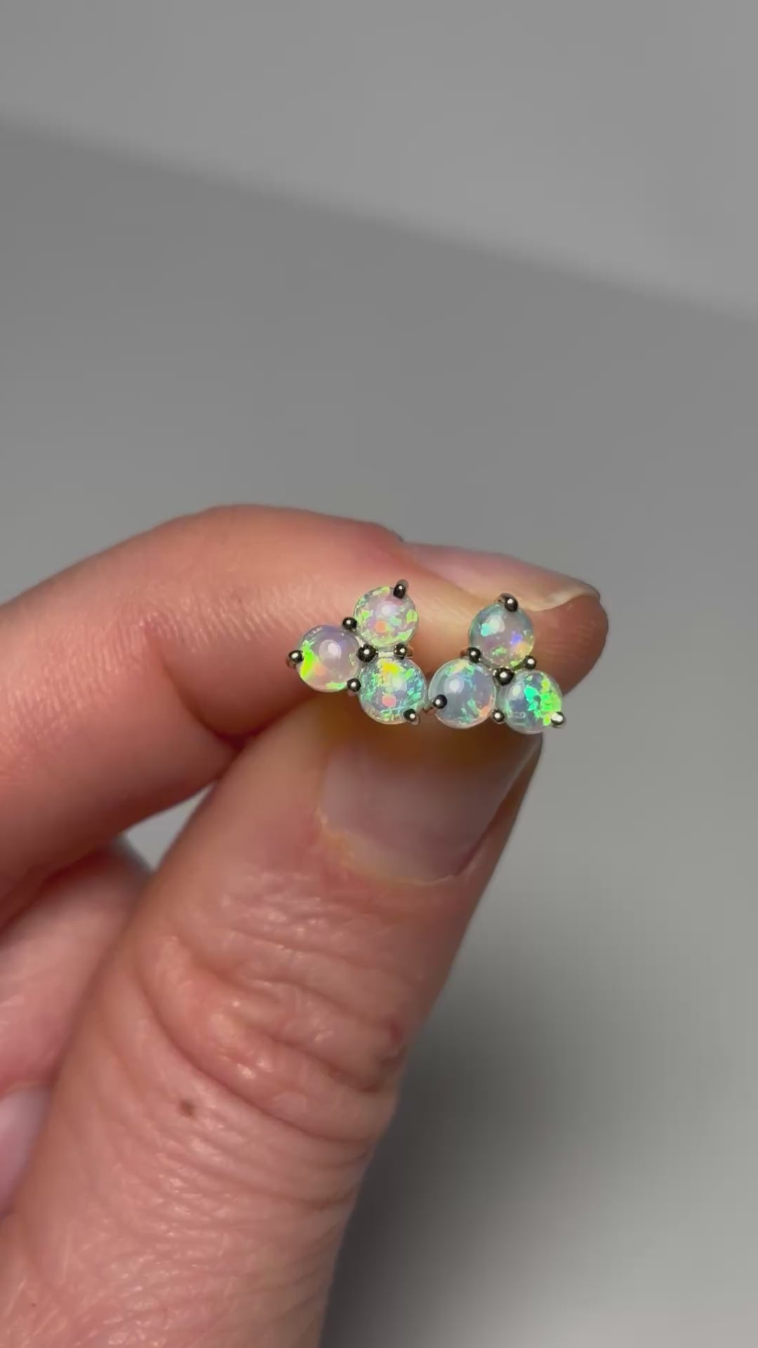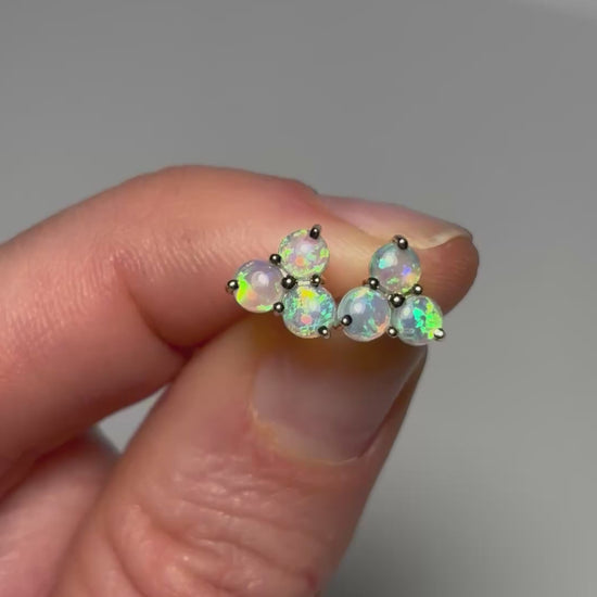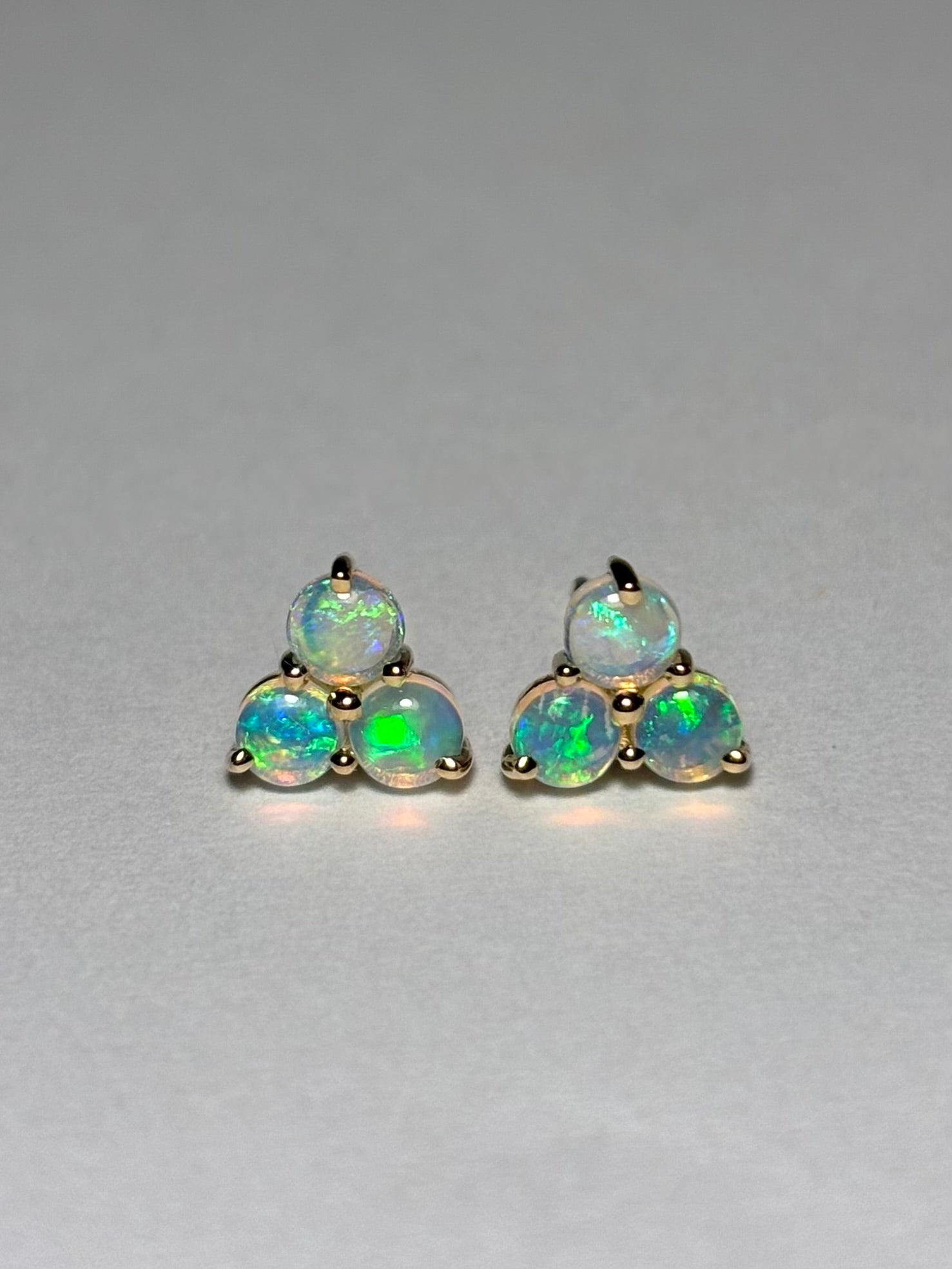 They feature a trio of 3mm round crystal opals with colours of green, gold, blue and are giving off beautiful ocean vibes.