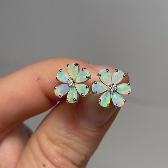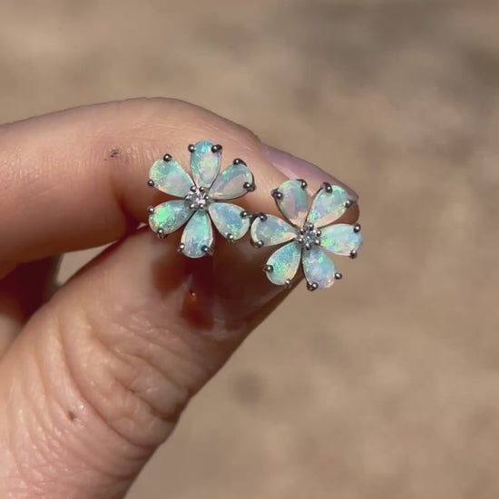 They feature 6 x tear drop opals and white sapphire combined to create a gorgeous floral look.
