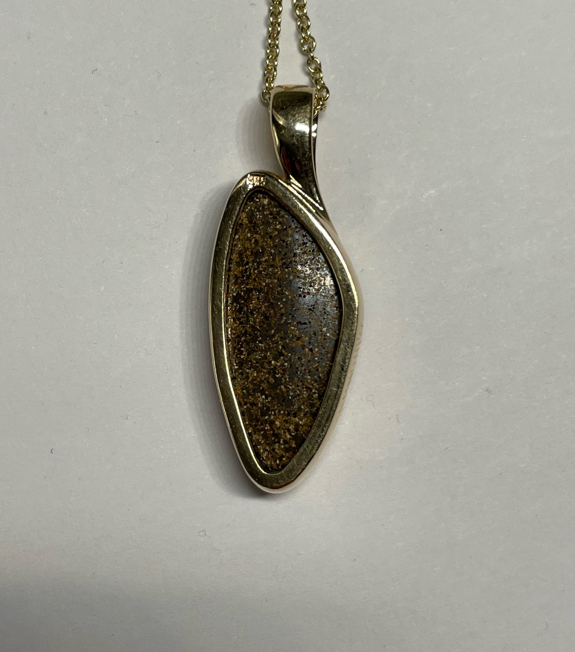 This magnificent opal pendant is from the heart of the outback and was mined in Winton, QLD, Australia.