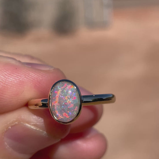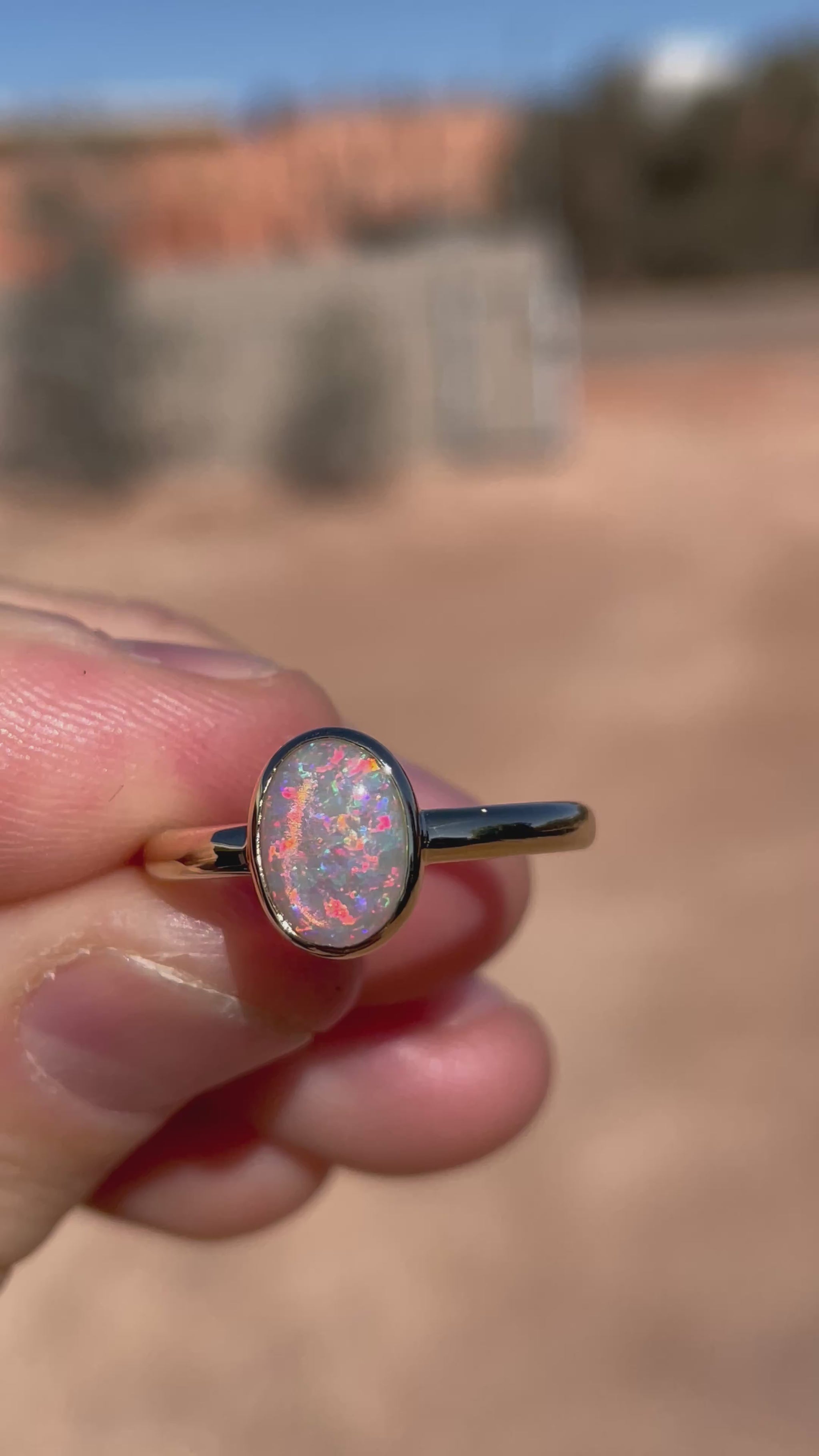 This classic opal ring is from the heart of the Australian outback and was mined in Opal Valley, Coober Pedy, South Australia.