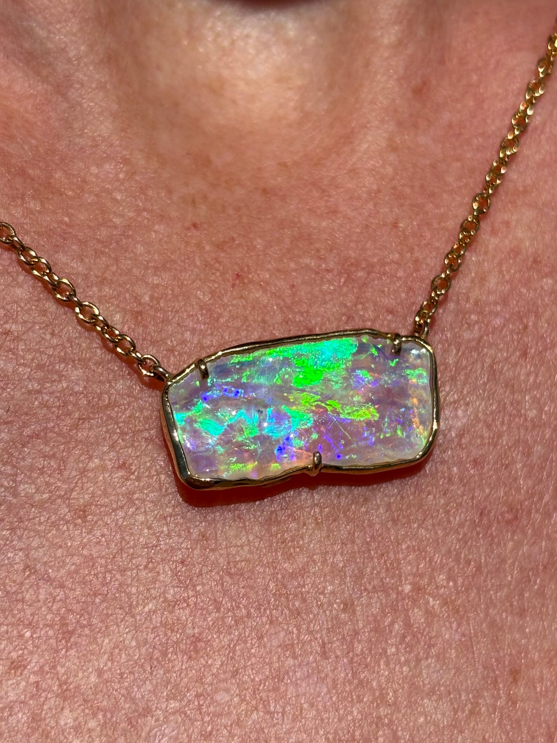 This phenomenal opal necklace is from the heart of the outback and was mined in the Corcoran field, Lightning Ridge, Australia.